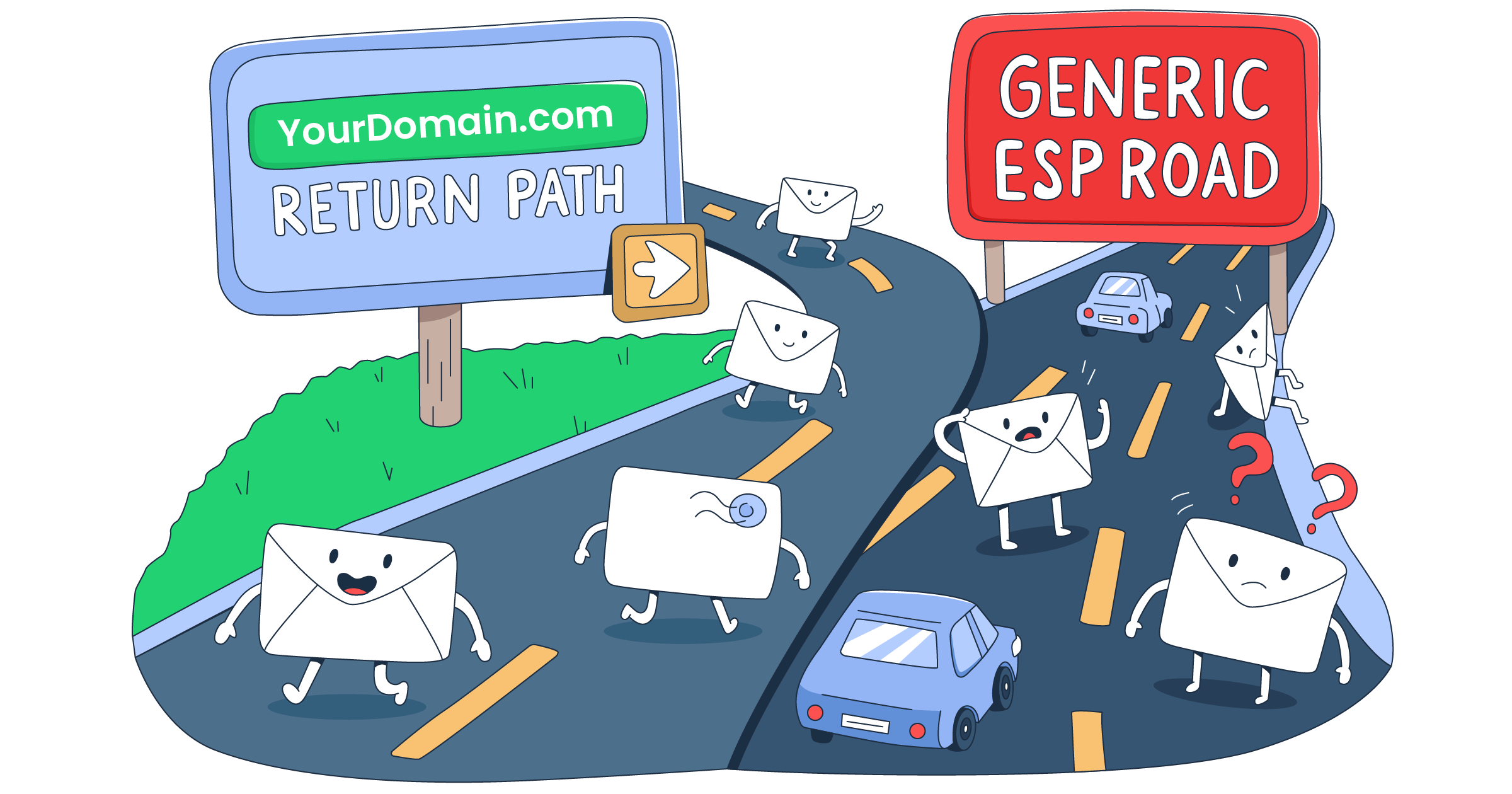 - Custom return path (MAIL FROM): Use a custom subdomain (e.g., bounces.yourdomain.com) for your return path to ensure that bounce handling doesn’t negatively impact your main sending domain’s reputation and allows for easier tracking.