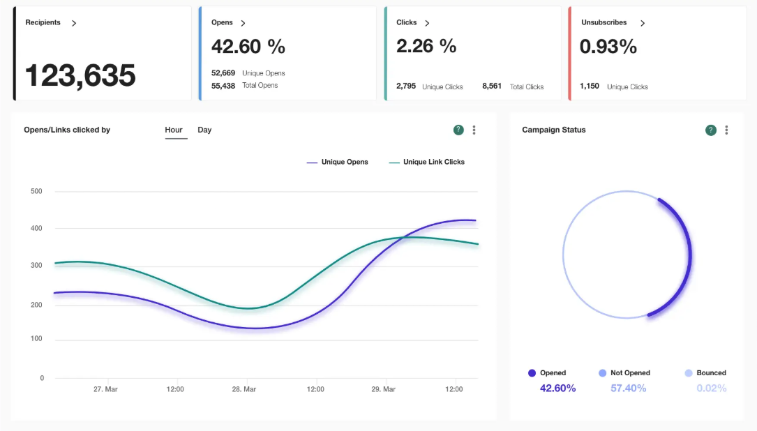 Standout features: A variety of templates, customer breakdown feature, smart sending