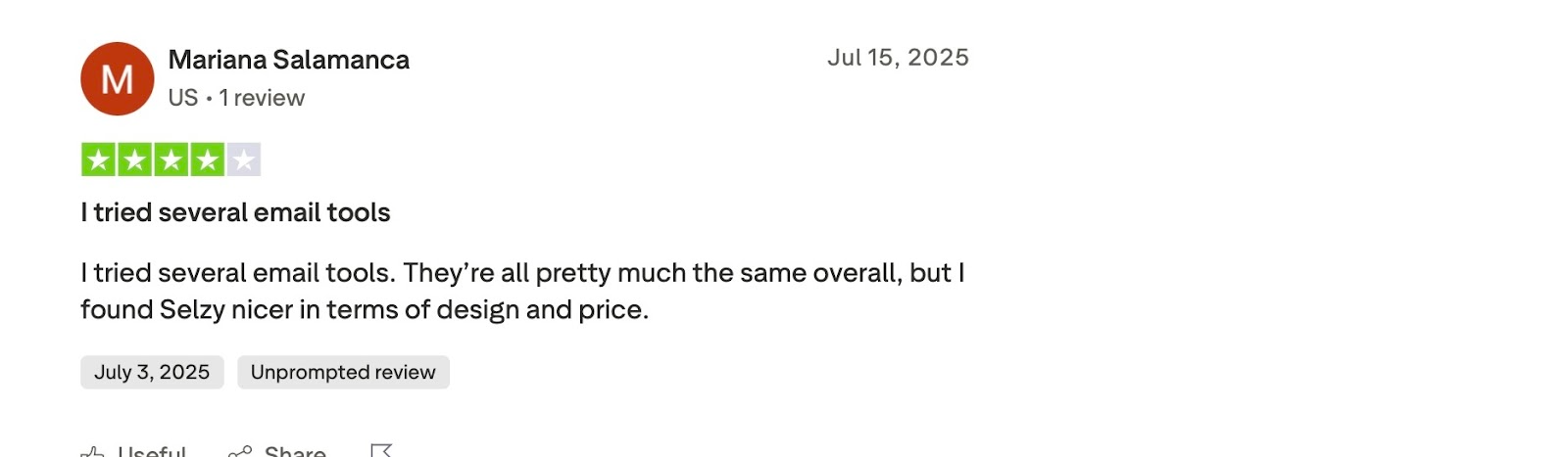But maybe that’s a platform-specific thing since I’ve noticed nothing but stellar reviews lately for Mailjet on Trustpilot: