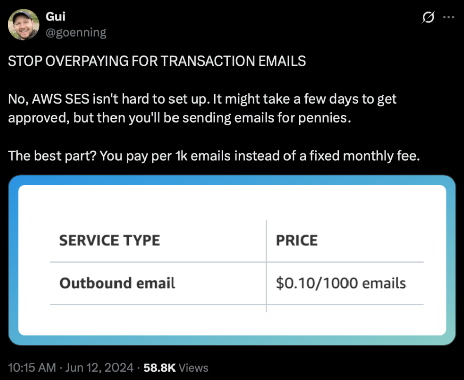 | Amazon SES | N/A | From $0.10 per 1,000 emails | Developers |