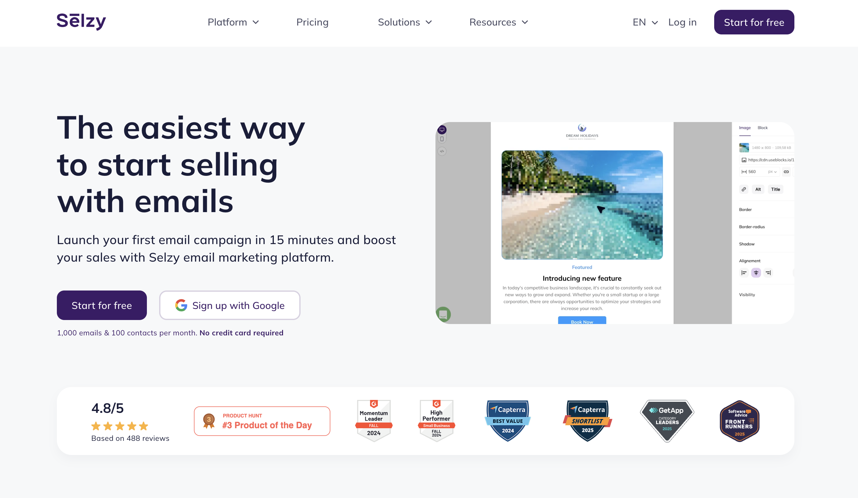 | Selzy | 1000 emails/month, 100 contact | From $7.5 | Marketers |