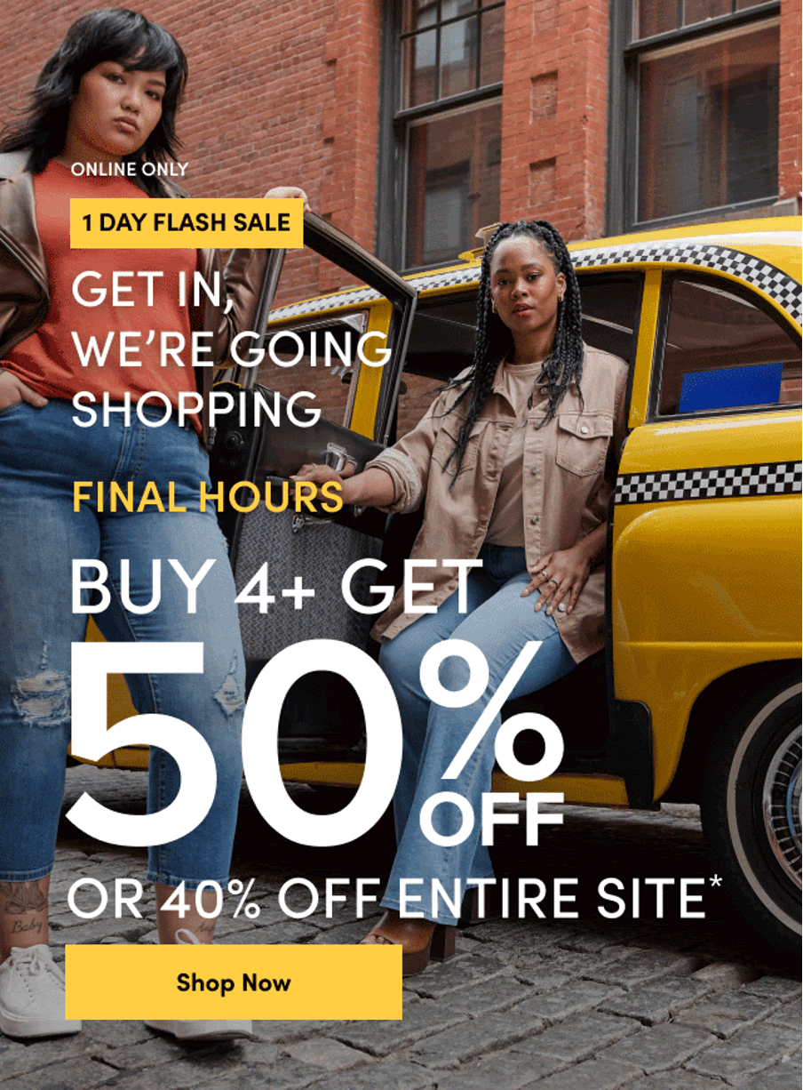 In the copy, heavy focus is put on explaining that Torrid’s 50% off clearance sale ends soon.