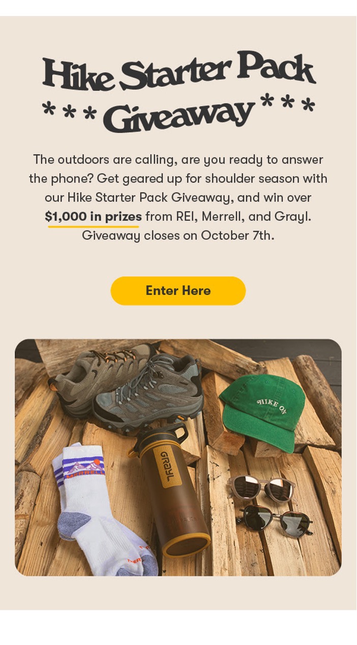 It’s important to note that you don’t have to do a massive “epic” giveaway like Sunski, and if you do, you don’t have to do it all the time. But it’s always a good idea to promote something big with several emails over just one. No matter what kind of giveaway email campaign you create, make sure it’s easy to participate in, and there is a clear call to action button.