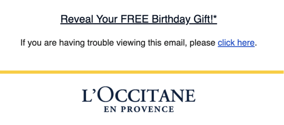 As part of its email marketing strategy to increase sales by sending targeted emails, L’Occitane sends an appreciation drip campaign to its customers consisting of up to two birthday-themed emails.
