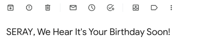 To hook customers in, the first email has a subject line with the customer’s first name and a birthday reminder.