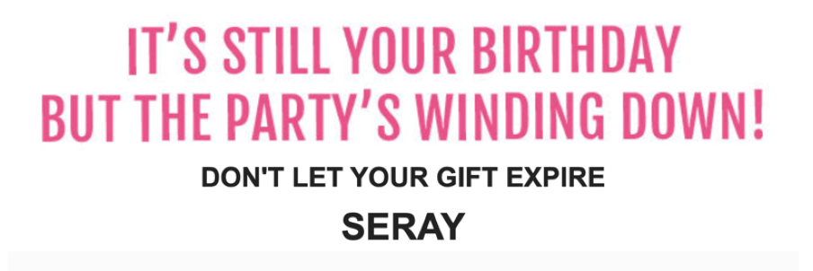 Torrid’s second email in the re-engagement drip campaign is sent on the birthday of the customer.