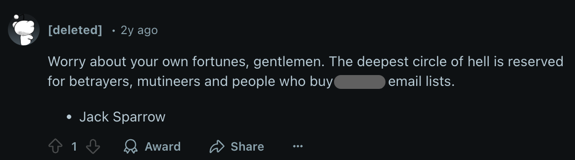 And here’s a shocker: Cold emailing contacts from scraped lists is forbidden by most email marketing platforms. This is because cold contacts typically don’t consent to receive emails, which is against most email compliance rules and regulations.