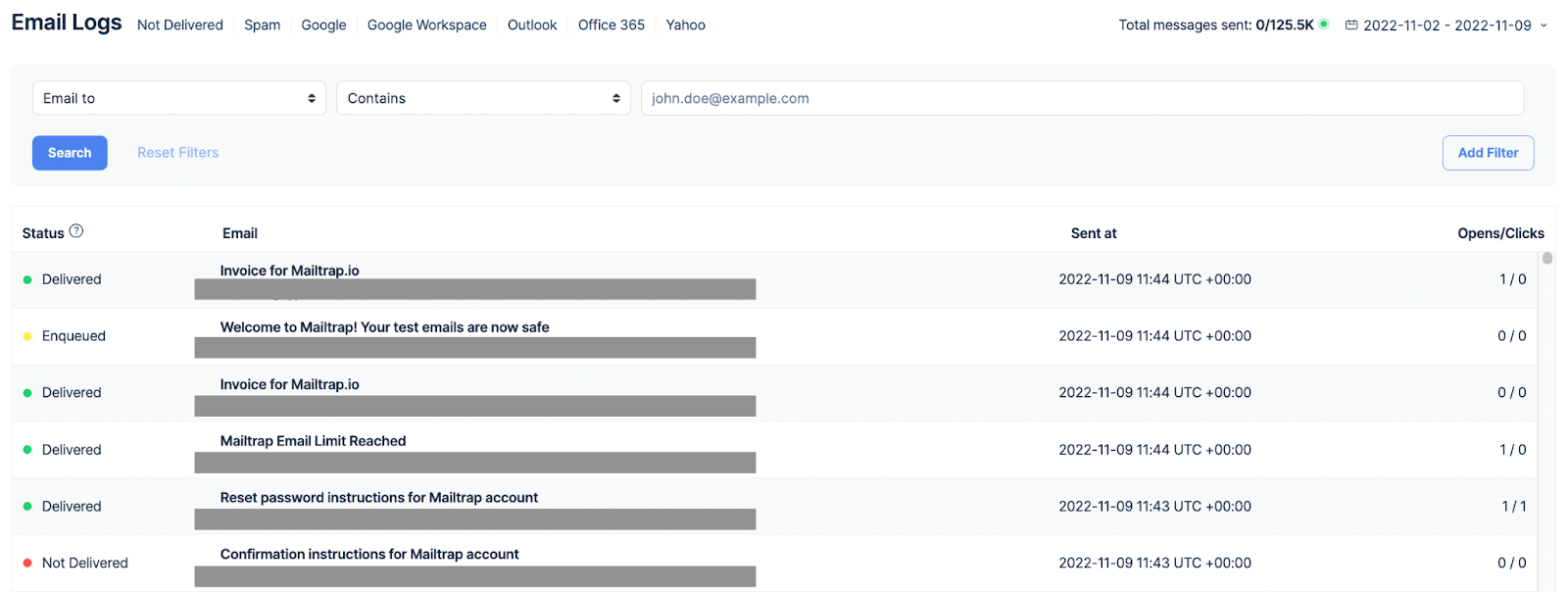Regardless of the method for bulk sending you choose, you should always watch out for your application’s Logs and Mailtrap’s dashboard to ensure your emails are being processed and sent.