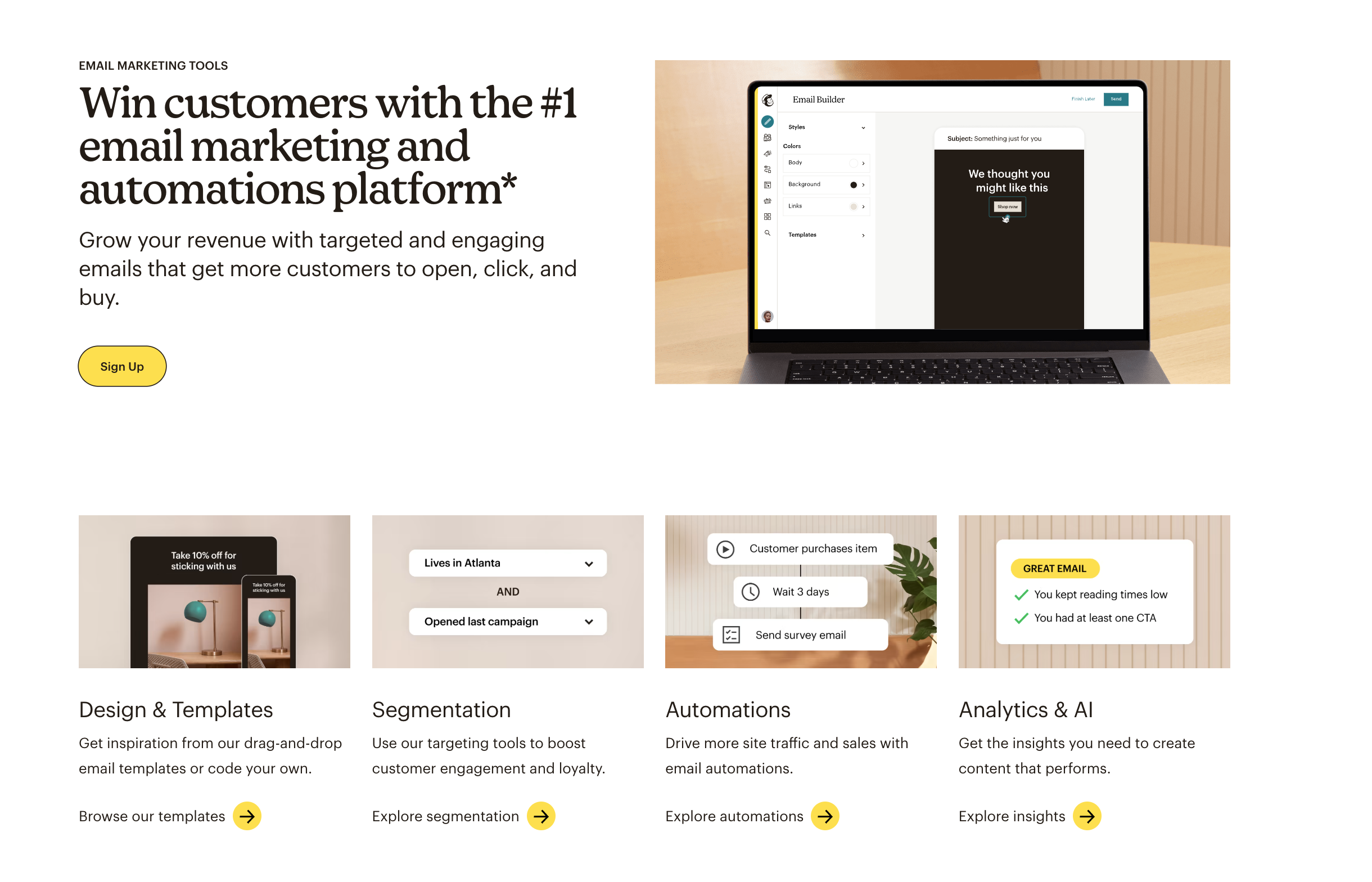 - Mailchimp is best for marketers looking to get their campaigns off the ground or add basic email-sending functionality to their apps.