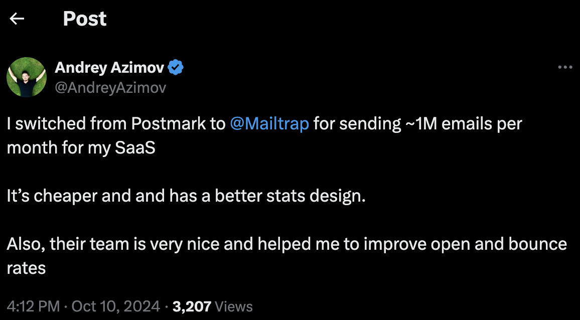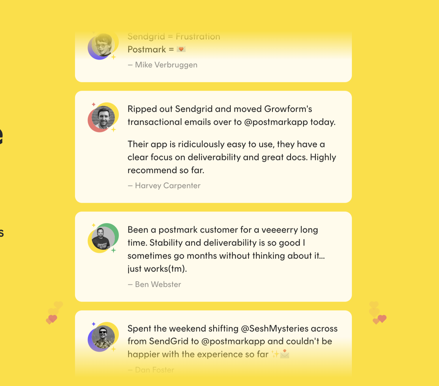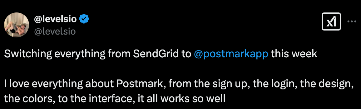 Moreover, people seem to show Postmark love even on social media. Some praise its easy integration, while some have even found it a great SendGrid alternative!