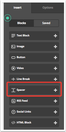 Another solution is to use padding to add required space around the content blocks. Padding is 100% supported by all versions of Outlook. Just select the respective content element in the drag-n-drop email editor mode. Then select the Options menu and set the parameters there.