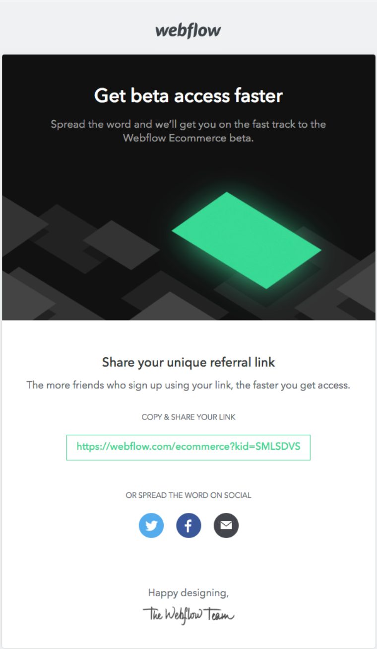 Referred customers convert 30% better and have 16% higher lifetime value when compared to customers gained through other channels. So if you’re running a referral program, make sure to promote it in your email sequences. And if not, we highly encourage you to start one!