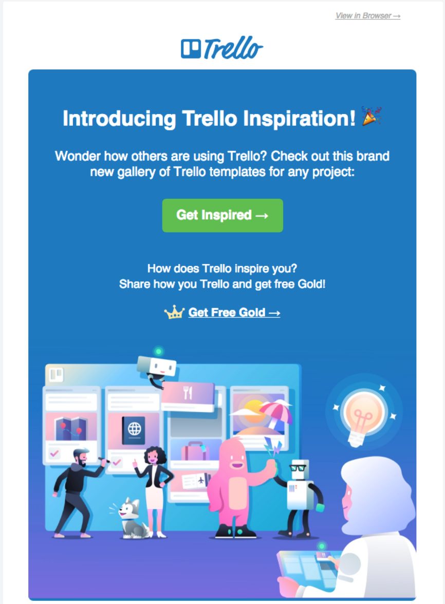 For the last one, an example would be an overview of the user’s month or year of using your product. Paired with some engaging infographics, this email will give them a sense of achievement, and you’ll bond over celebrating their lovely milestone together.