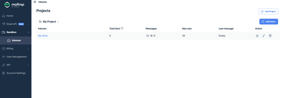 To set up a virtual inbox with Email Sandbox, you will need to first create a free Mailtrap account.
