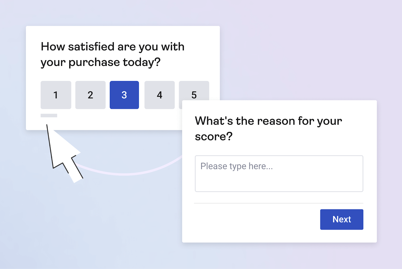 How? Evaluate their satisfaction with your product or team performance by sending a post-purchase or post-interaction survey in a live chat, pop-up, or email.