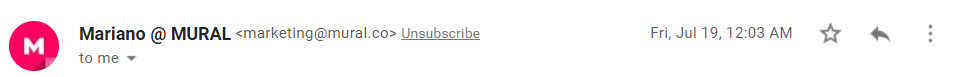 Simply put, this is an unsubscribe link or button displayed next to the email sender information. The header is an especially user-friendly place for the opt-out function because the reader doesn’t have to search through the body of the email text to find it. Here is how it looks in Gmail: